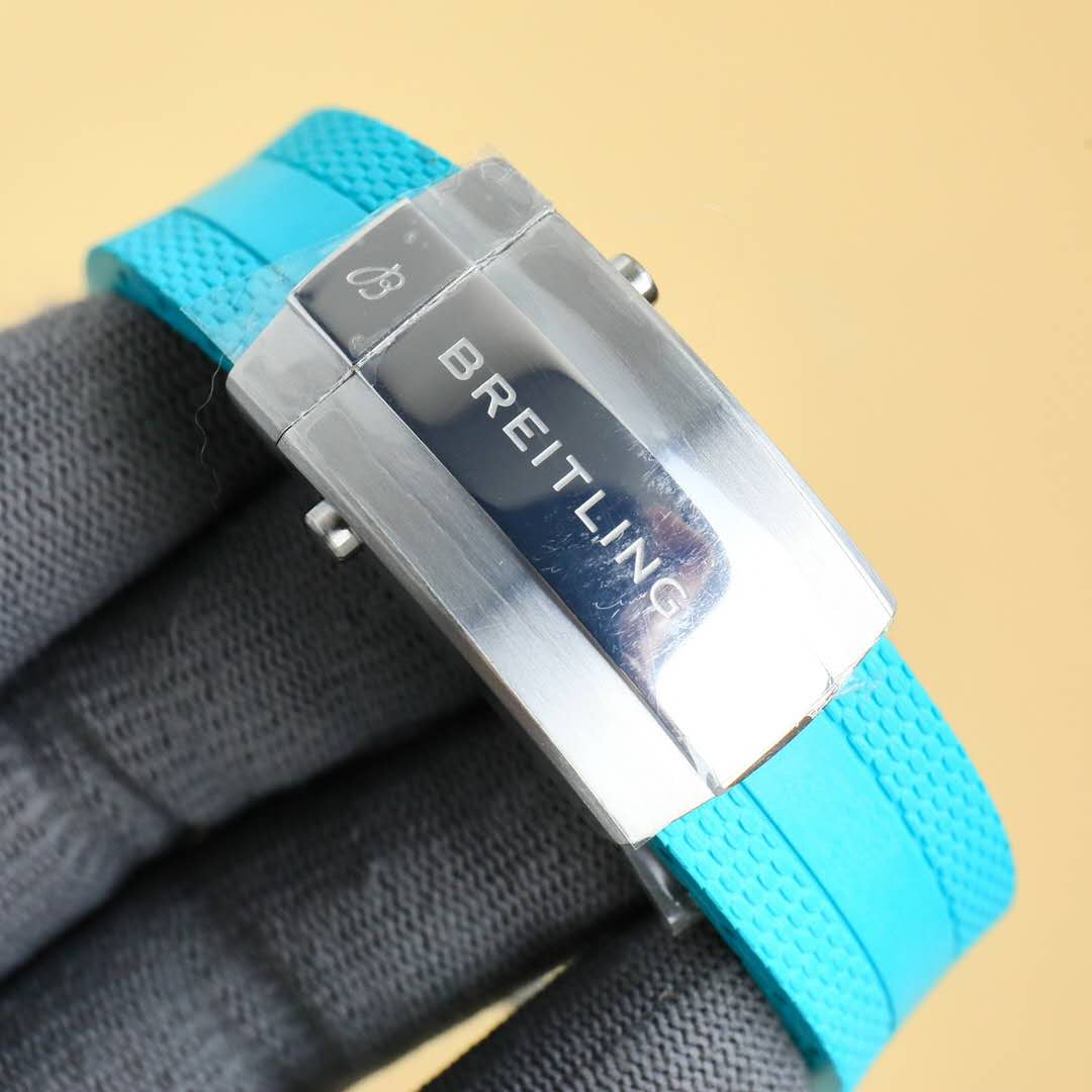 • Breitling Blue Yellow Dial Blue and Black Rubber Strap men watch