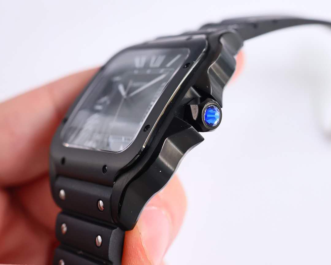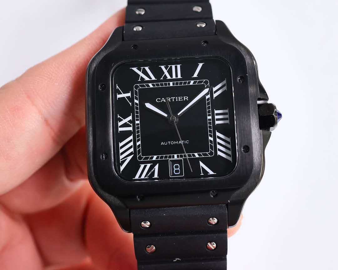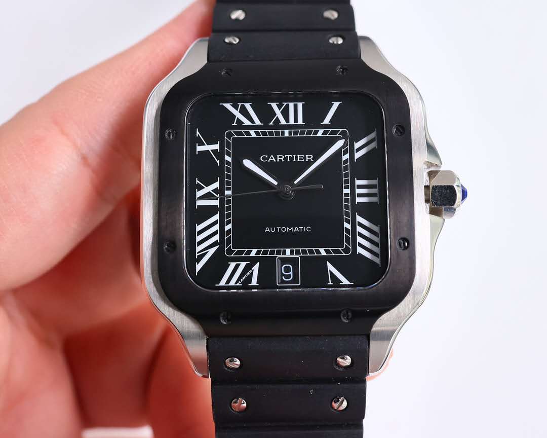 Super Clone Cartier Santos Silvered Opaline Dial Men's Watch 01