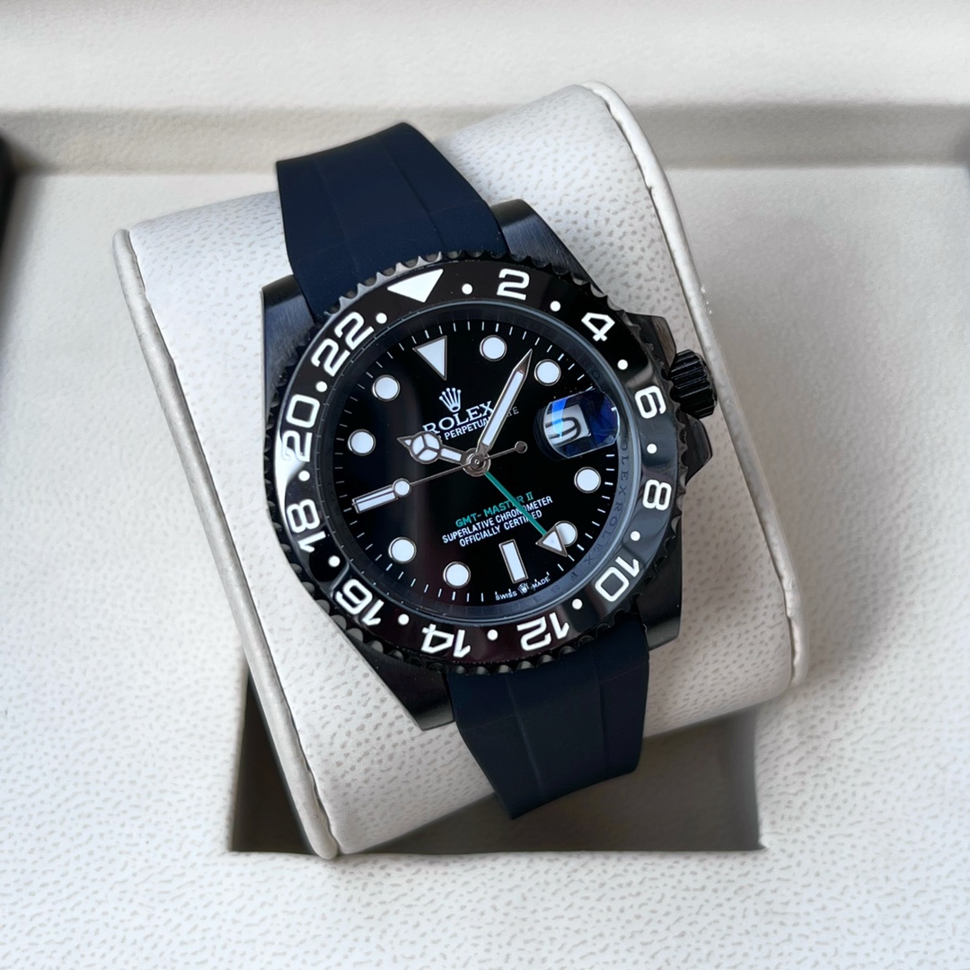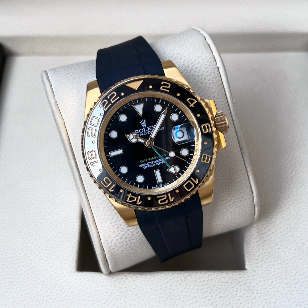• Rolex GMT-Master II Black Dial Multicolor Coke Ring leather Strap Men's Watch 126718GRNR