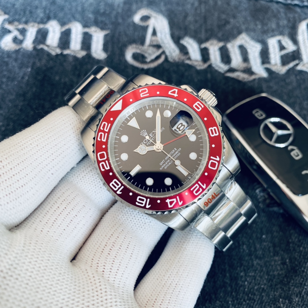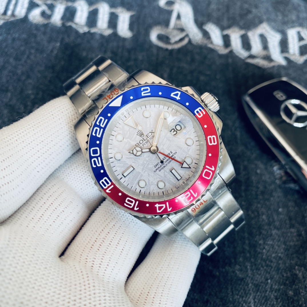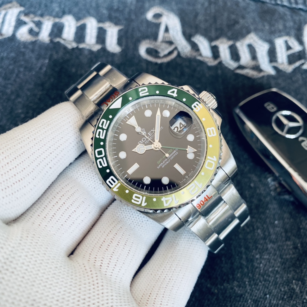 • Rolex GMT-Master II Black Dial Multicolor Coke Ring silver Strap Men's Watch 126718GRNR