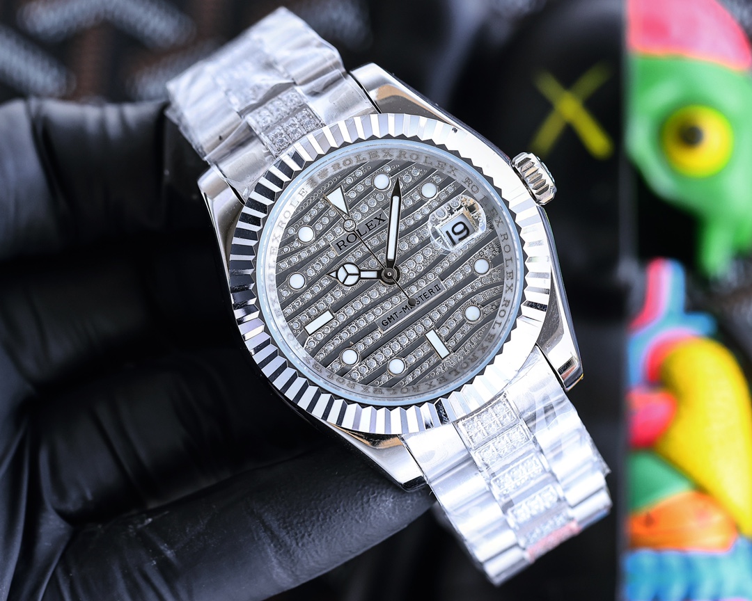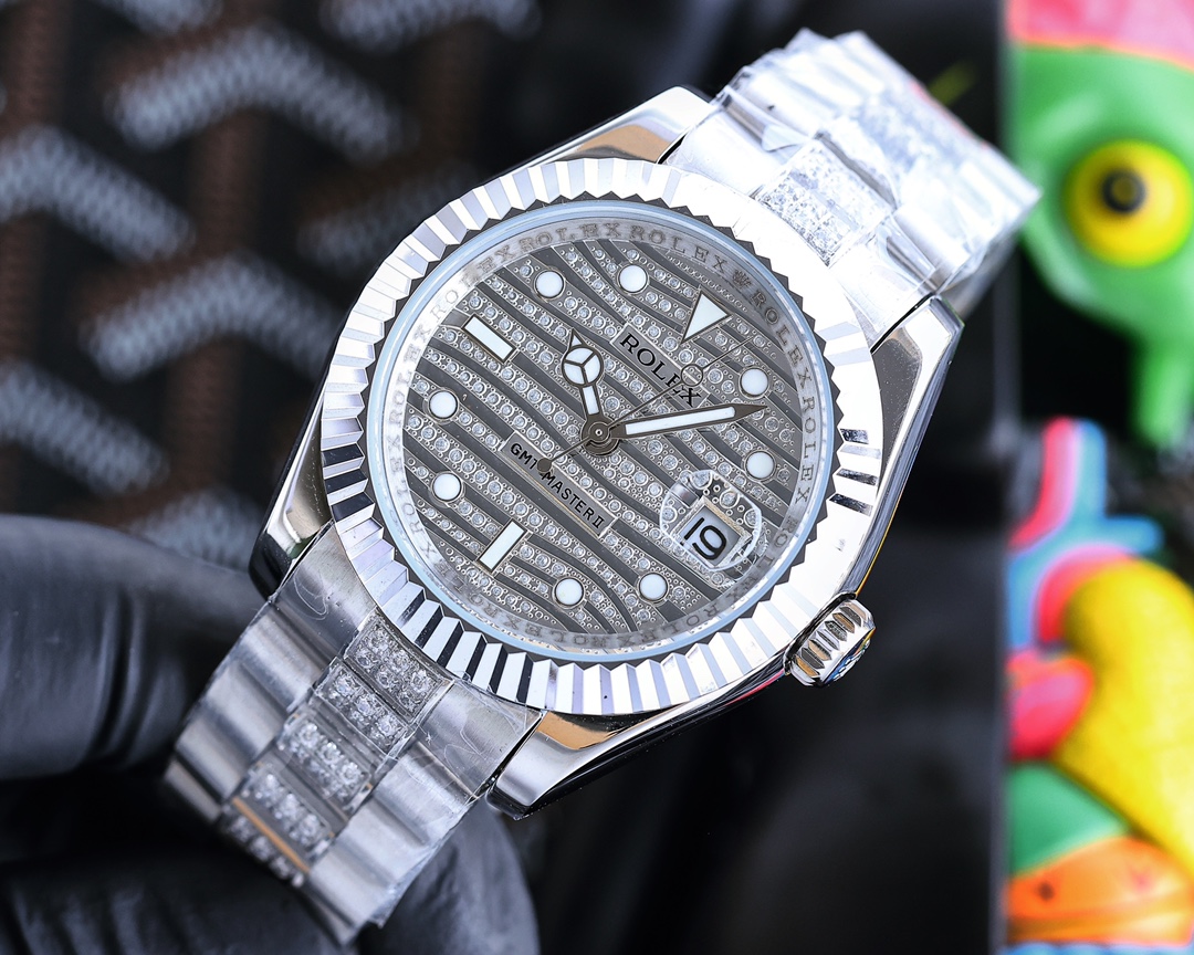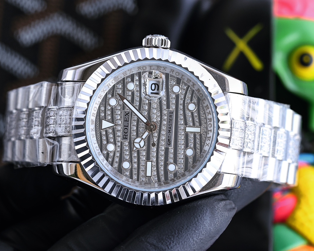 • Rolex GMT-Master II Diamond Circle black Dial silver Diamond Strap Men's Watch Top poison