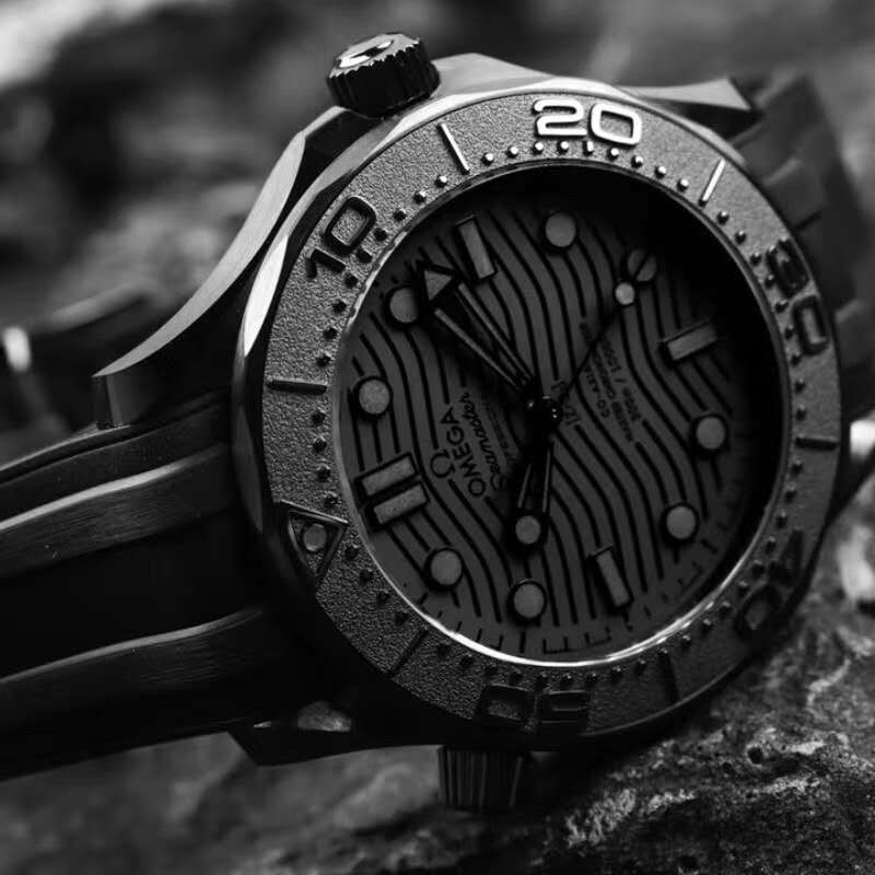SEAMASTER 300 Black dial Black rubber strap men watch