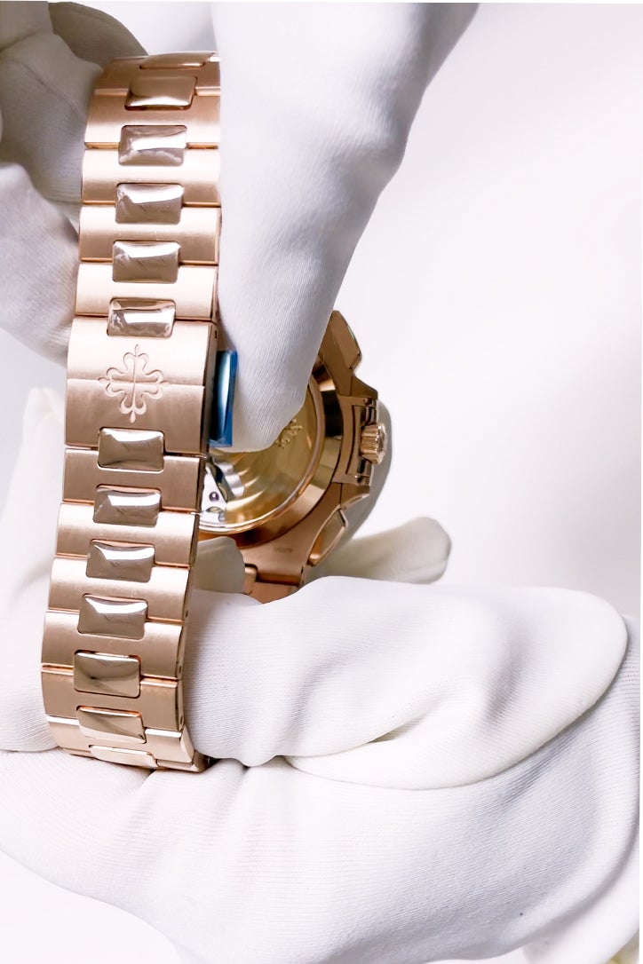 40.5mm 18K rose gold case, sapphire crystal back, black gradient dial with gold applied hour markers with luminescent coating, self-winding Caliber CH 28-520 C movement with date, chronograph, 60-minute and 12-hour monocounter at 6 o’clock, sweep seconds hand (chronograph hand), approximately 45-55 hours of power reserve, 18K rose gold bracelet Nautilus fold-over clasp. Water resistant to 120 meters. 5980/1R-001 5980-1R-001 5980/1R 2021 Update Butterfly clasp