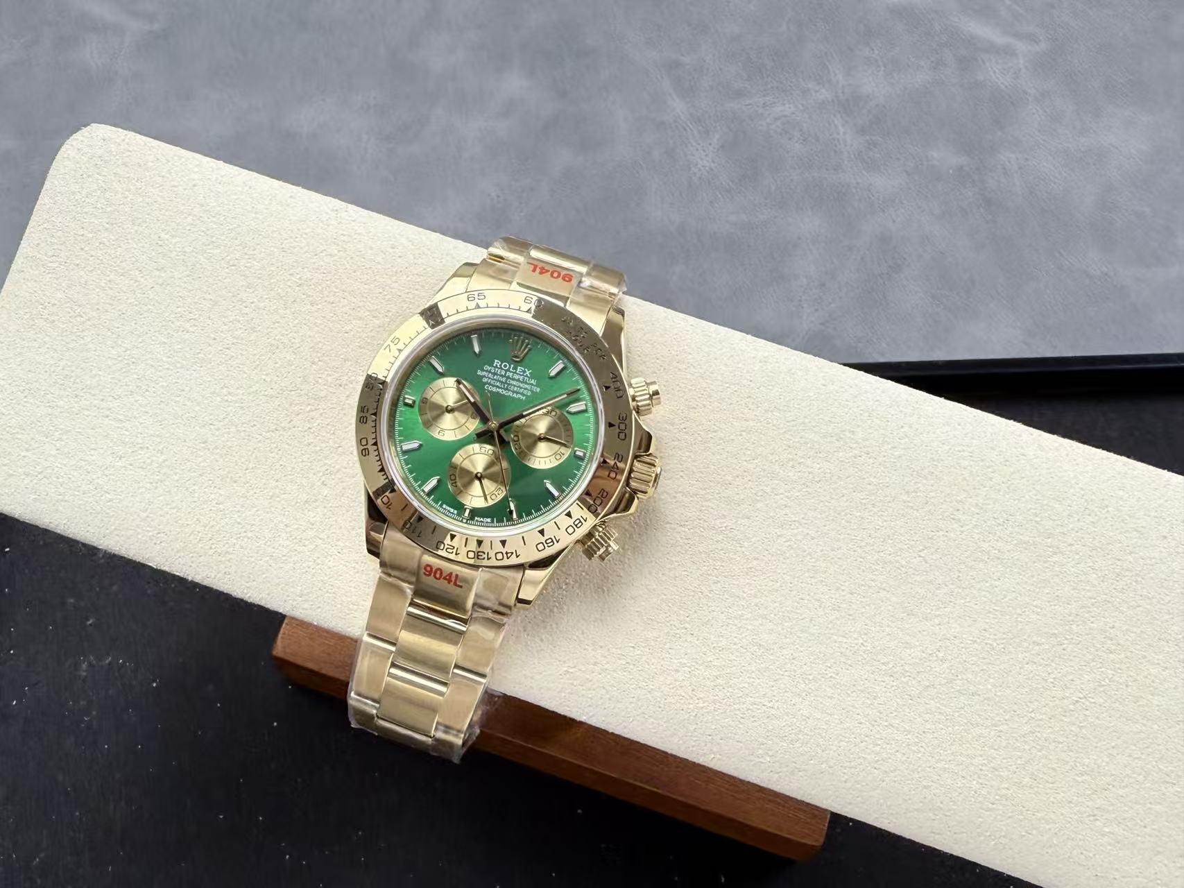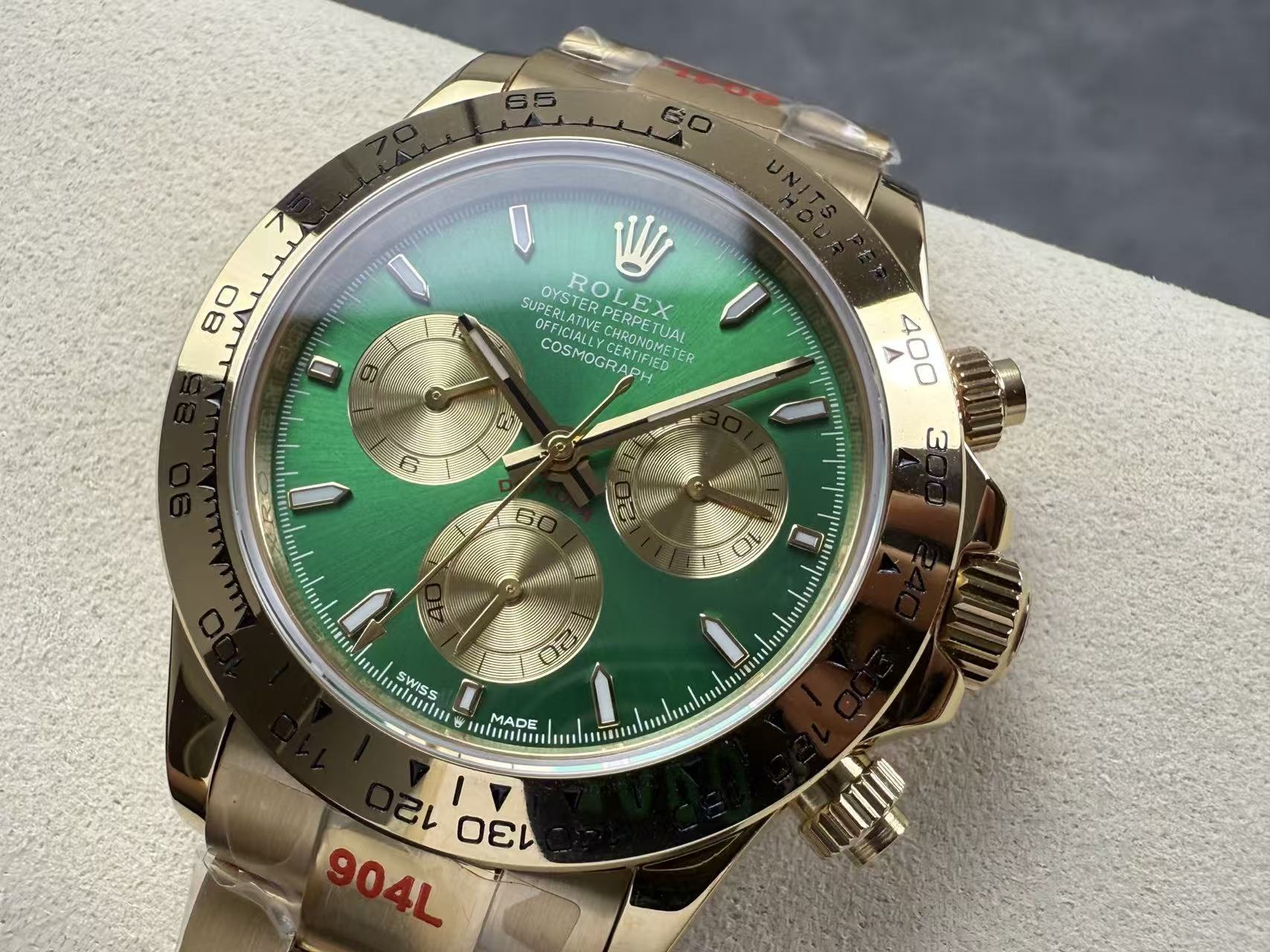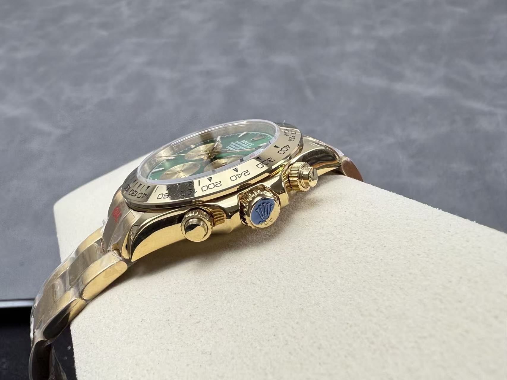 Cosmograph Daytona Green diall Yellow Gold Oysterflex Strap Mens Watch