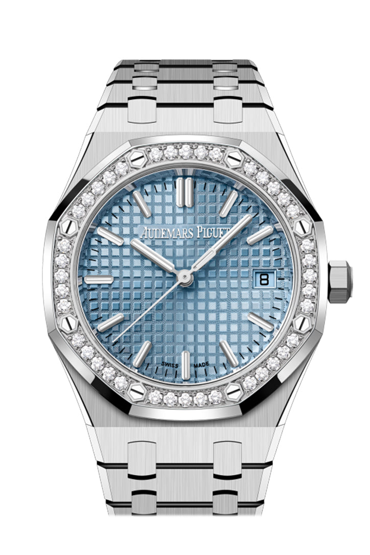 Super Clone Audemars Piguet Royal Oak 34 Stainless Steel Light Blue Dial Diamond Bezel Watch 77451ST.ZZ.1361ST.03