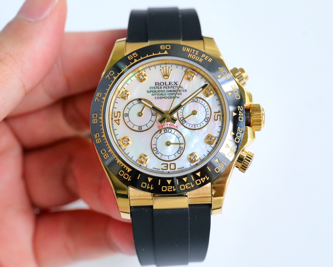 Super Clone Cosmograph Daytona White Mother of Pearl Diamond Yellow Gold Oysterflex Strap Mens Watch 116518LN 116518
