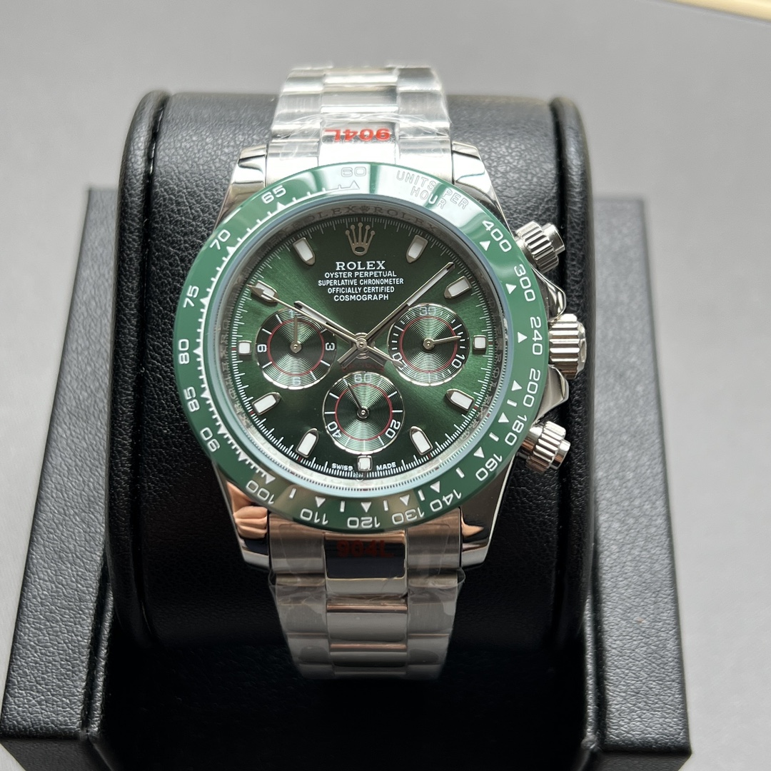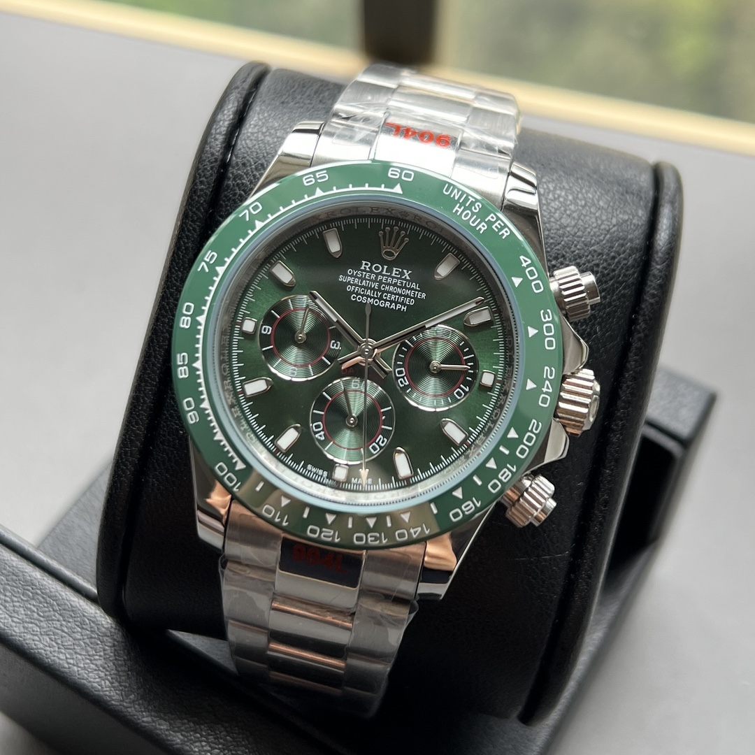 Super Clone Rolex Cosmograph Daytona Green ring green dial silver Oysterflex Strap Mens Watch 116518LN 116518