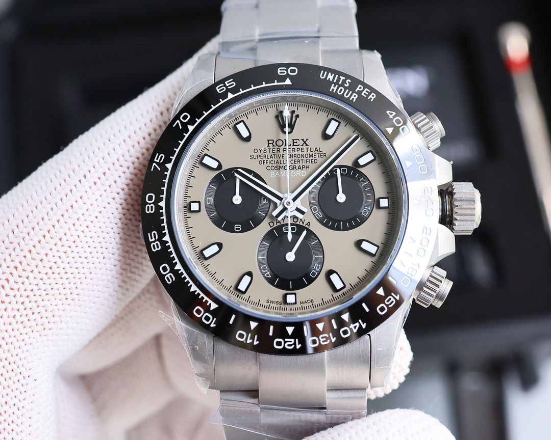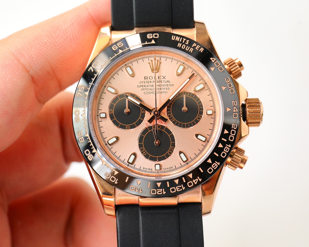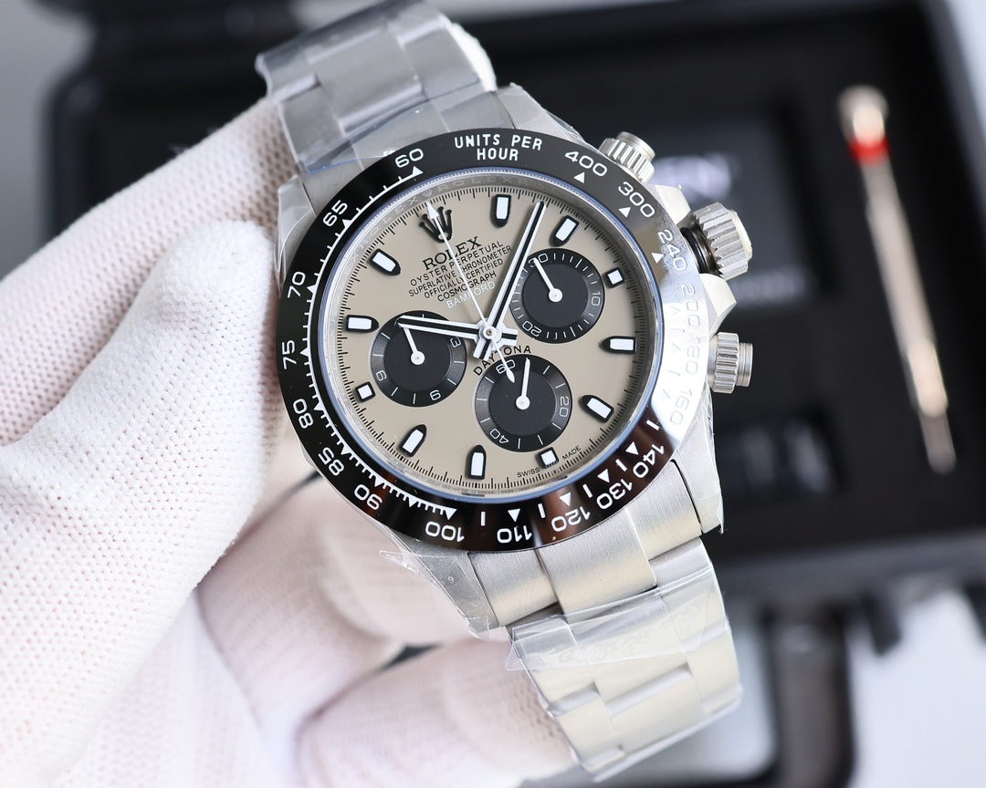 Rolex Cosmograph champagne Daytona 40 black Dial Stainless Steel Mens Watch Oysterflex Strap 116599-116598-116595