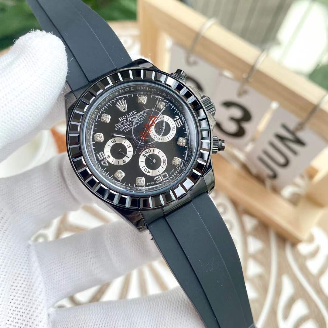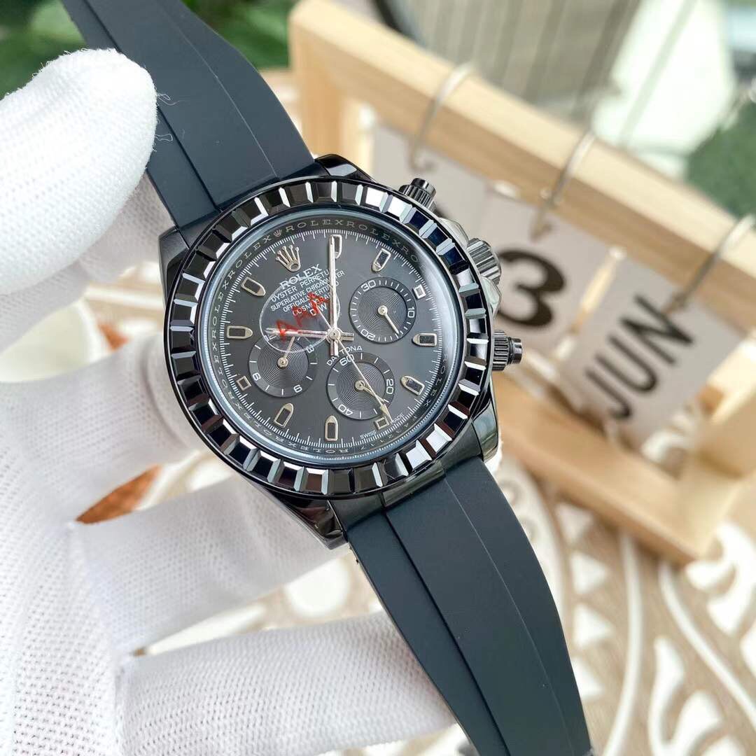 Rolex Cosmograph rainbow diamond Daytona 40 black Dial Stainless Steel Mens Watch Oysterflex Strap