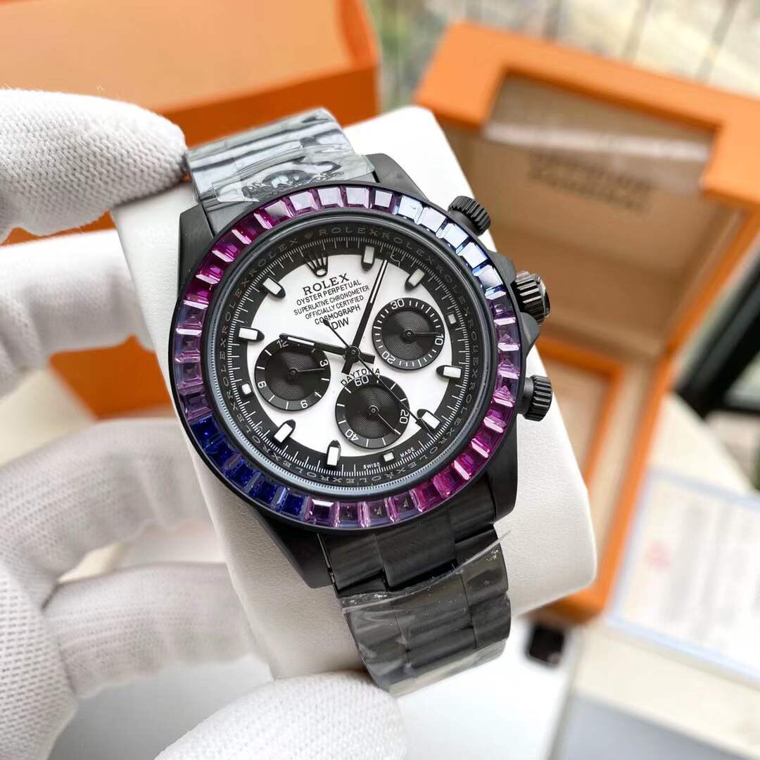 Super Clone Rolex Unique Cosmograph Rainbow Daytona Purple blue bezel 40 black Dial Stainless Steel Mens Watch 116599-116598-116595